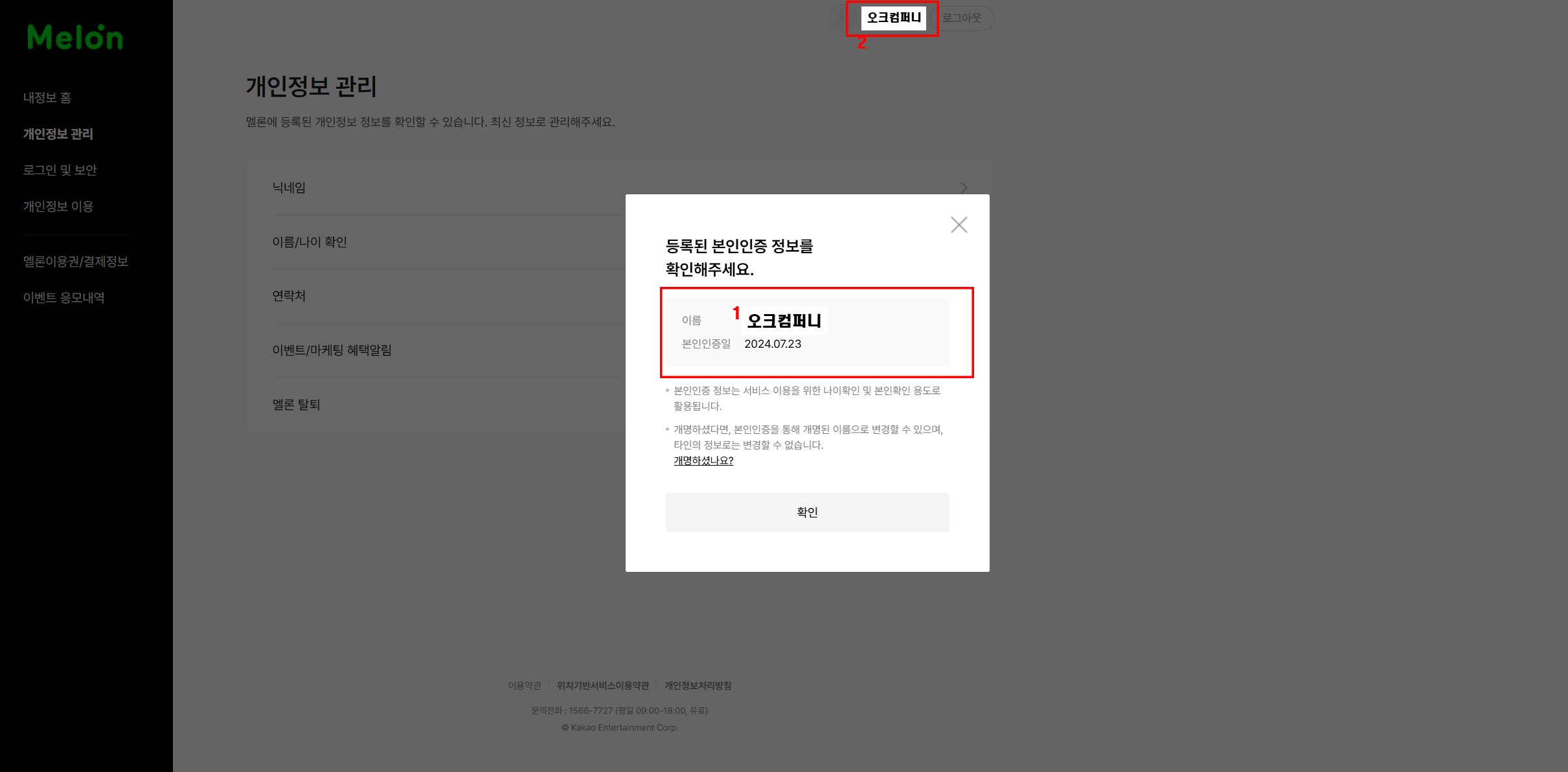 - 음원 구매 내역 페이지 및 내 정보 페이지 모두 본인의 이름 혹은 아이디, 닉네임이 함께 있는 경우에만 인정됩니다.
