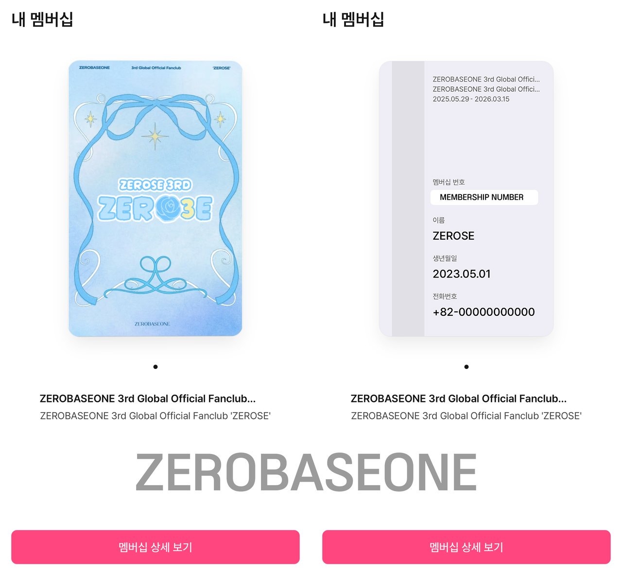 3. ZEROBASEONE 공식 팬클럽 'ZEROSE' 3기 모바일 회원카드